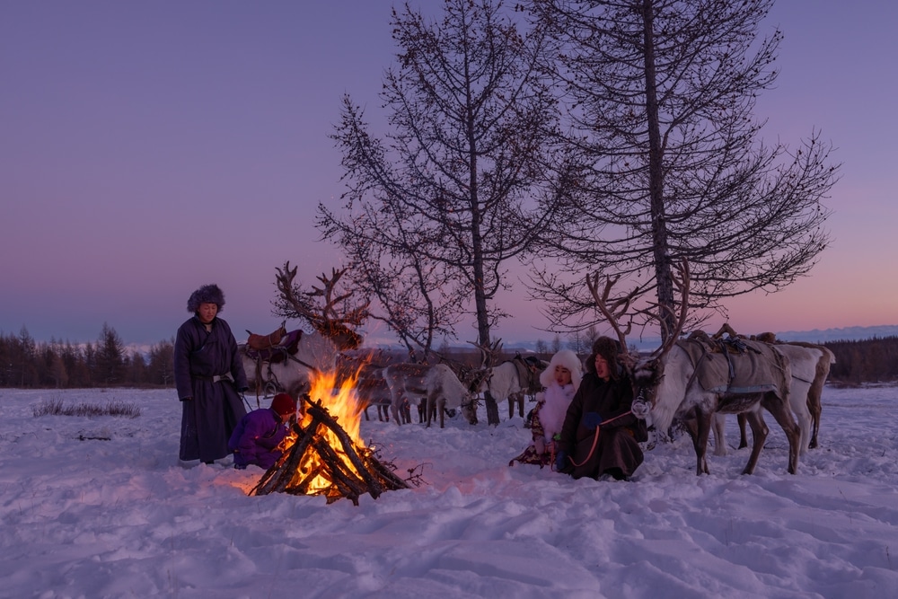 As true nomads, the Tsaatan migrate up to 15 times per year, maintaining a lifestyle steeped in tradition. The government in Mongolia supports the preservation of their way of life by offering stipends to help cover basic needs.